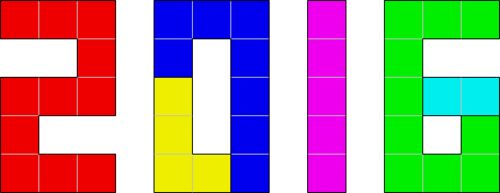 2016年,あけましておめでとうございます.裁ち合わせの問題です(やや難しい). 6色に塗られている6個の断片を並べかえて,8x5の長方形にしてください.